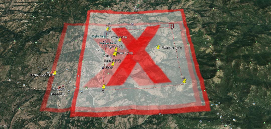 The upper layer X outline is the area of the Stargate II survey flown over the Republic, Washington project area (Overlook and Lamefoot Mine Corridor).