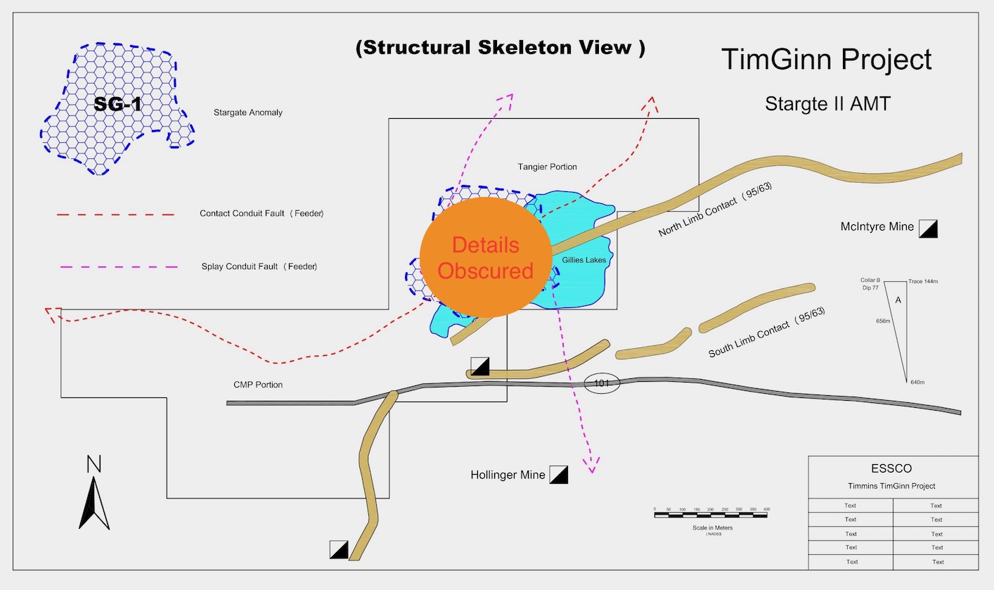 Yet the Stargate II System has mapped out the faults and structural traces in this whole region, these are the feeder system for the mineralization, the 'Magma Highways' some would say. The data was compiled and analyzed, and the main drill targets identified. This very valuable information is available from ESSCO.
