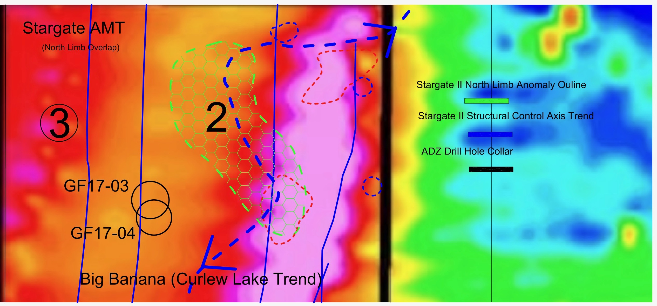 The Stargate II System has also identified additional drill targets where the PBS Zone, the NT Zone and the Golden Arm Structure are interpreted to converge.