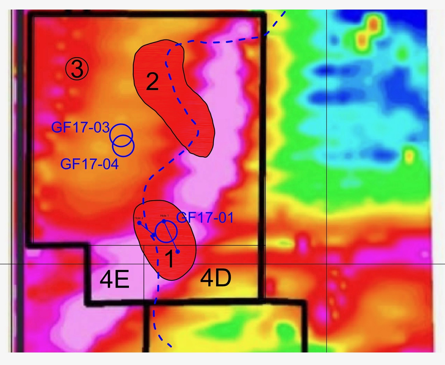 Please note- Confederation Minerals (pink) anomaly is dwarfed by the RLG anomalies